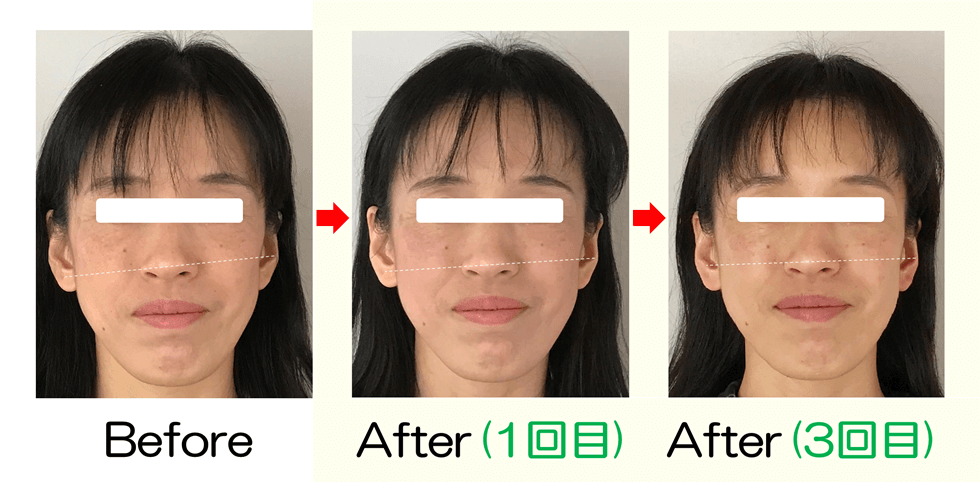 アゴの歪みの位置が中央に戻り左右対称のフェイスラインとなり、