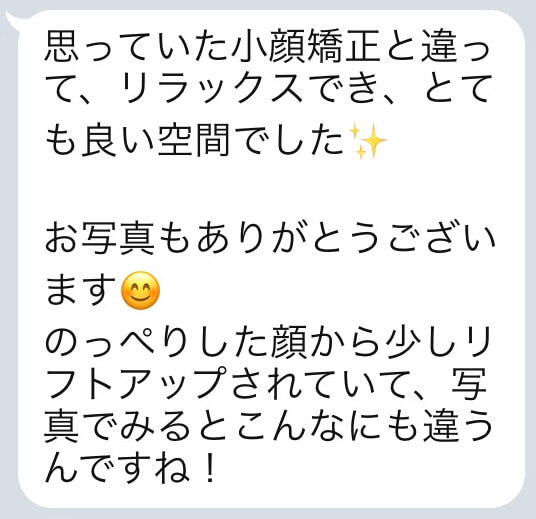 大変リラックスさせて頂き、小顔矯正の概念が変わりました。