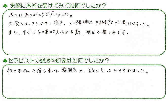 ● 施術を受けて如何でしたか?