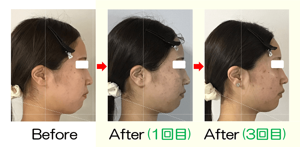 ・ 3回目:頬骨が上がってリフトアップし、アゴも引き締まって角度も上がってシャープになりました