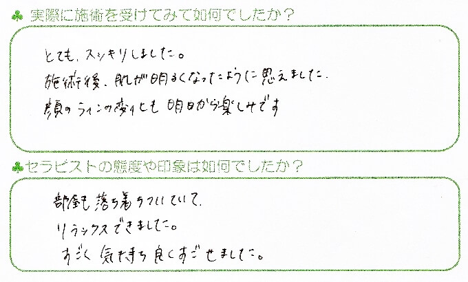 施術後、肌が明るくなったように思えました