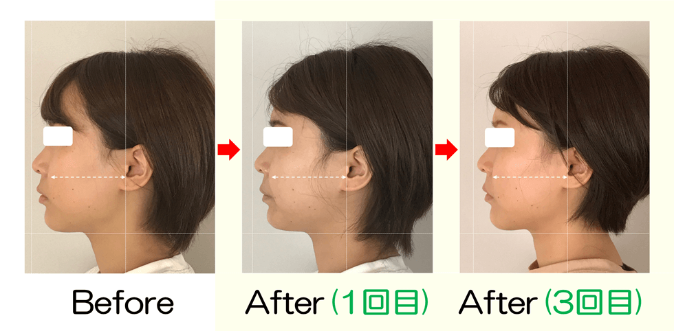 ・ 3回目:右側が内側に入って線から隙間が出来てキュッと引き締まったお顔になりました