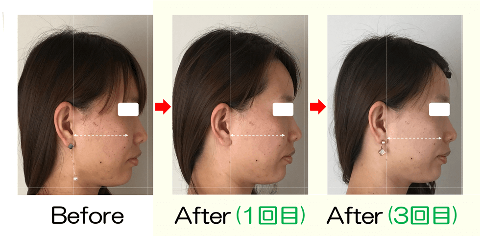 ・ 3回目:お顔の長さが短くなったことが、横顔の方が分かりやすいと思います