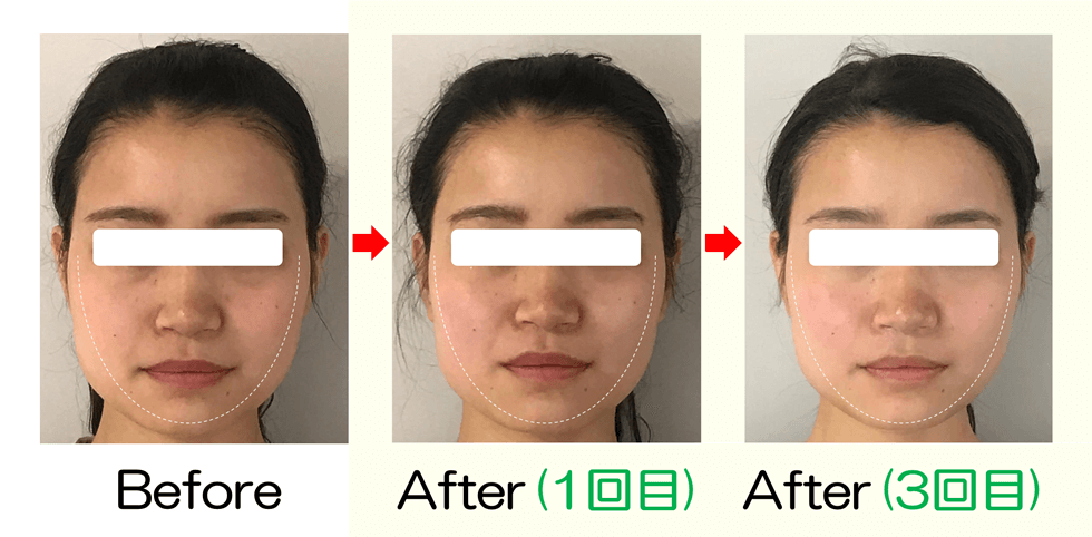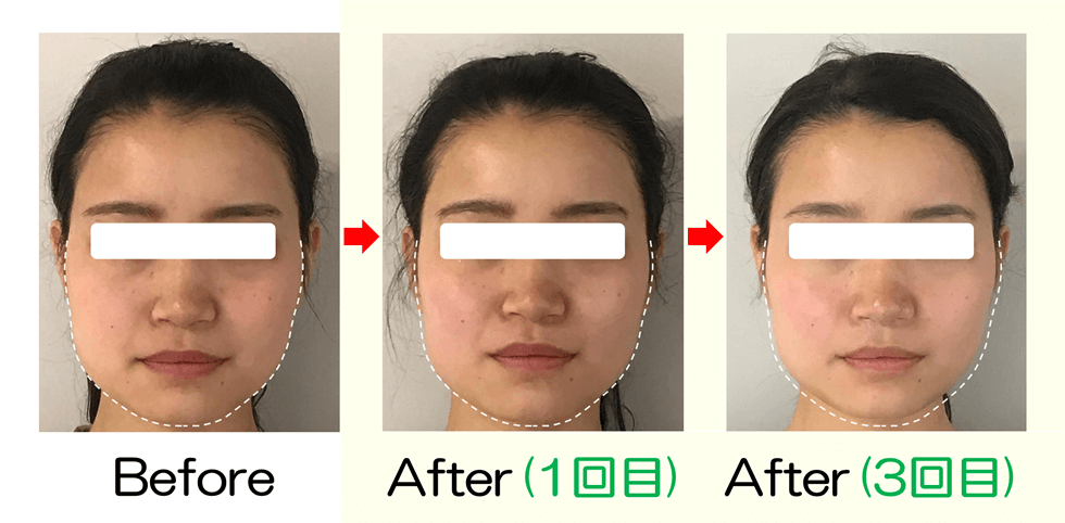施術を重ねるごとに頬のふくらみが引き締まり、