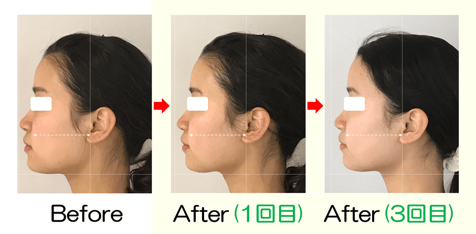 ・ 3回目:頬骨の重心が上がり鼻・アゴの位置も高くなって引き締まったお顔になっています